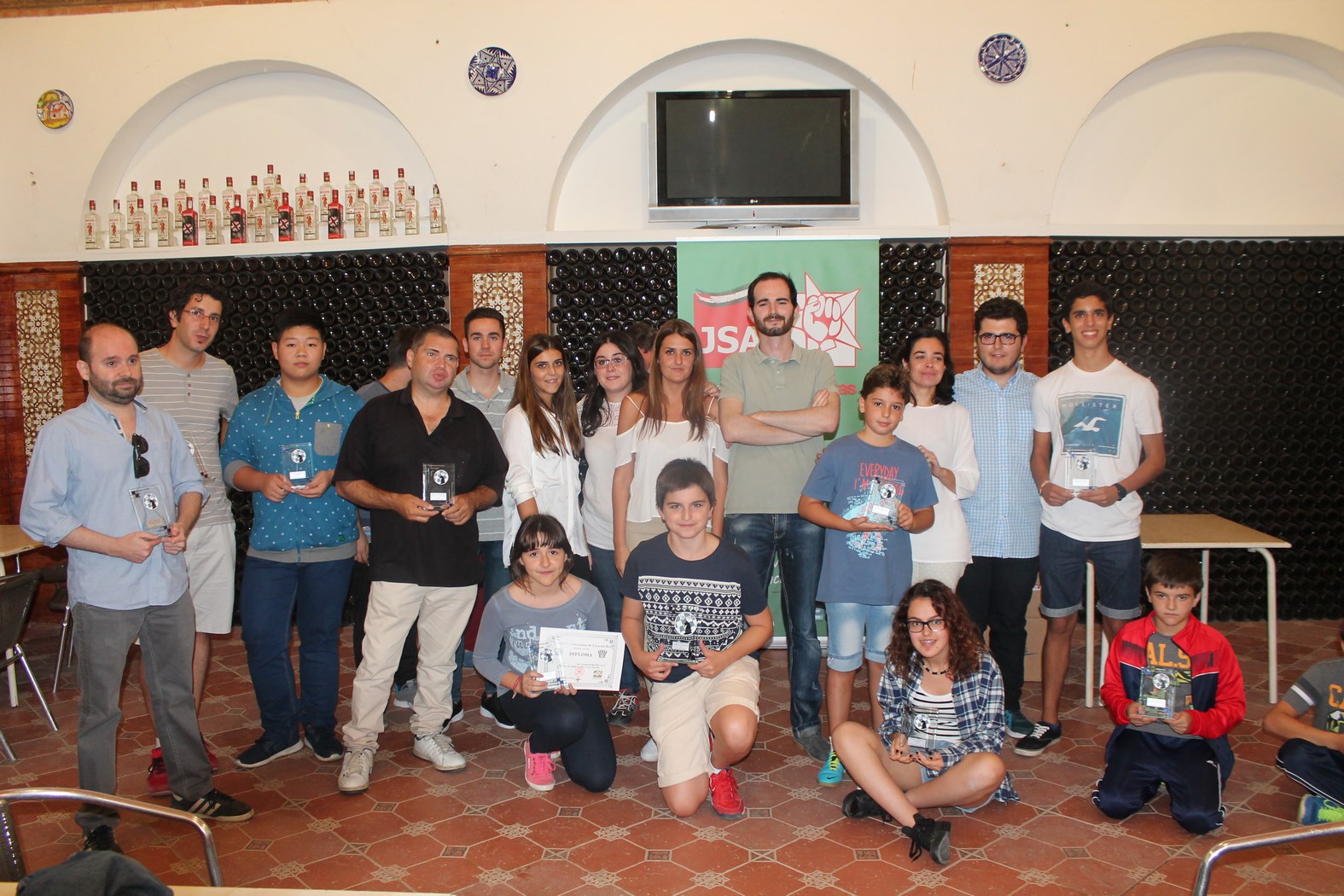 El pasado sábado tuvo lugar la celebración del I Torneo de Ajedrez JSA-Lora del Río en el Hostal-Restaurante Veracruz, desde las diez de la mañana aproximadamente. En torno a la una y media se disputaban las últimas partidas y una vez llegada las dos y media de la tarde, se daba comienzo a la entrega de trofeos. Se dieron cita para esta primera edición un total de 38 participantes llegados de varios puntos cercanos de poblaciones como Carmona, Tocina Los Rosales, Sevilla, Brenes, Camas, Espartina, Cazalla de la Sierra y Lora del Río. Se disputarían en total 6 rondas, completándose de este modo una jornada deportiva de ajedrez con un excelente ambiente y sobre todo con ganas de perpetuidad por parte de los organizadores que consciente de mejoras para el futuro, están dispuesto a seguir celebrando próximas ediciones. Se dieron cita excelentes jugadores como el ganador José Antonio Fernández, como también se pudo contar con la presencia del joven campeón de Tocina Los Rosales, Francisco Miguel Calleja Rojas, que ha participado recientemente en el Campeonato de España, así como destacar también la participación de jugadores locales como la de Antonio Jesús Espinar Peña.