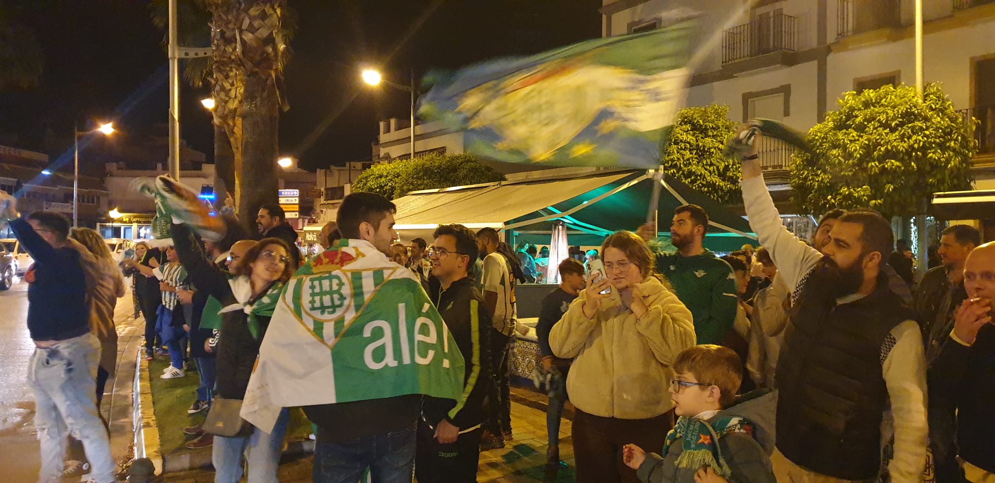 Familias completas, conocidos, amigos…todos acabaron uniéndose con los correspondientes cánticos para disfrutar de una noche bética realmente memorable. La pasión verdiblanca, recorrió diversas calles de la localidad, expresando una inmensa alegría y satisfacción que les había regalado su equipo, el Real Betis Balompié…!!enhorabuena a todos¡¡