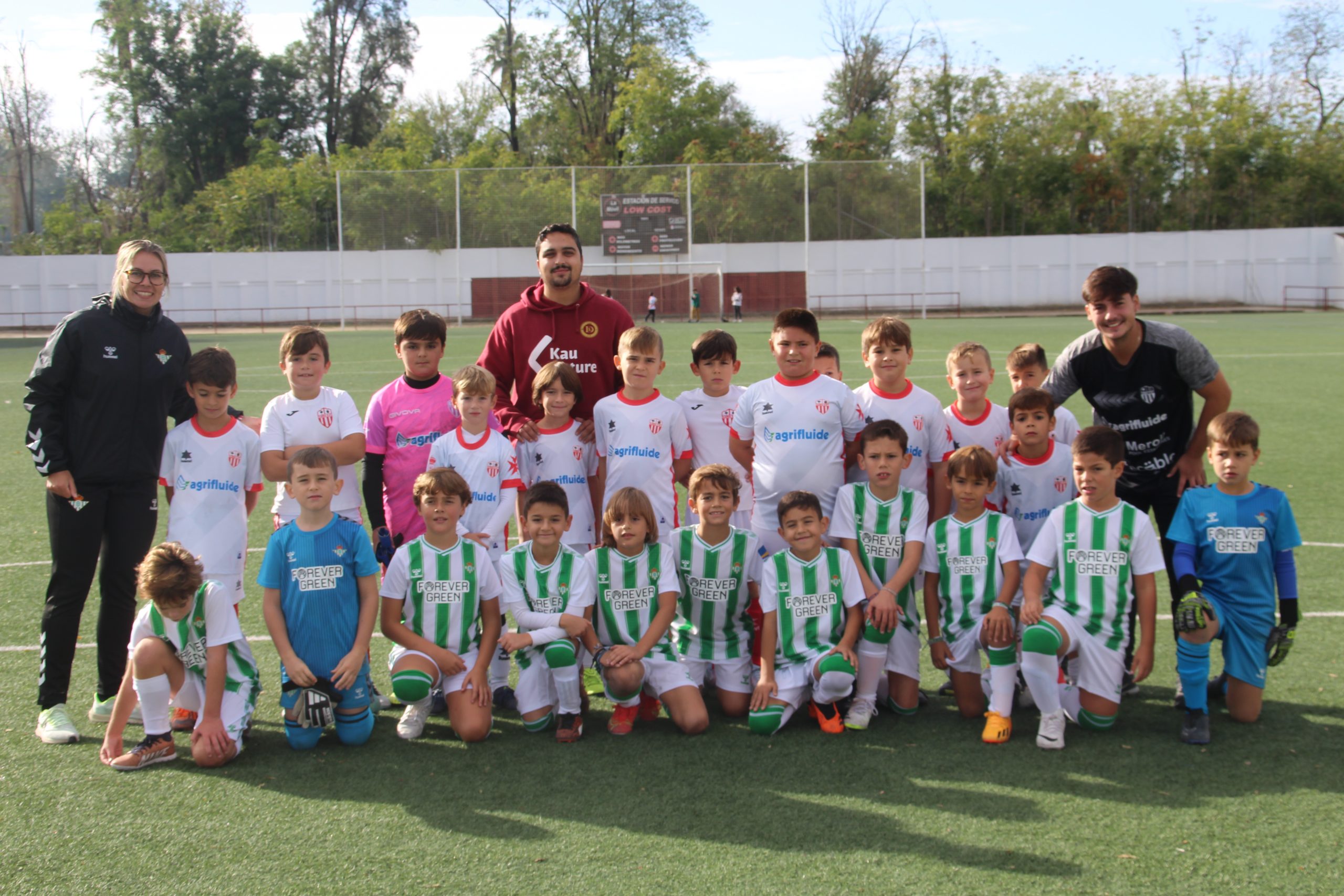 Benjamines “B” del Lora C.F. y benjamines de la E.F Real Betis en la foto de antes del comienzo del encuentro entre ambos equipos