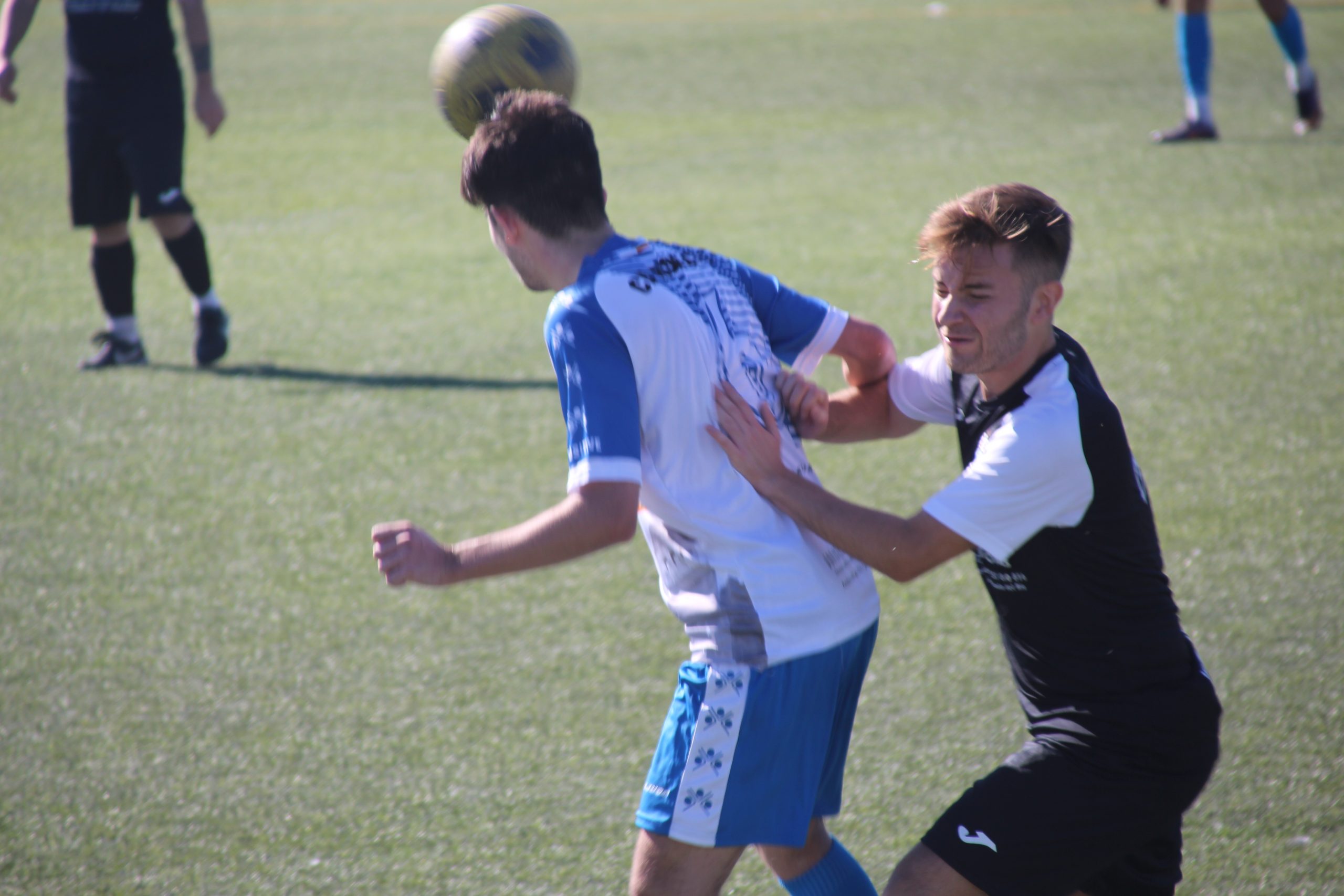 Álvaro Gómez, autor del primer tanto del encuentro es empujado por un defensa rival