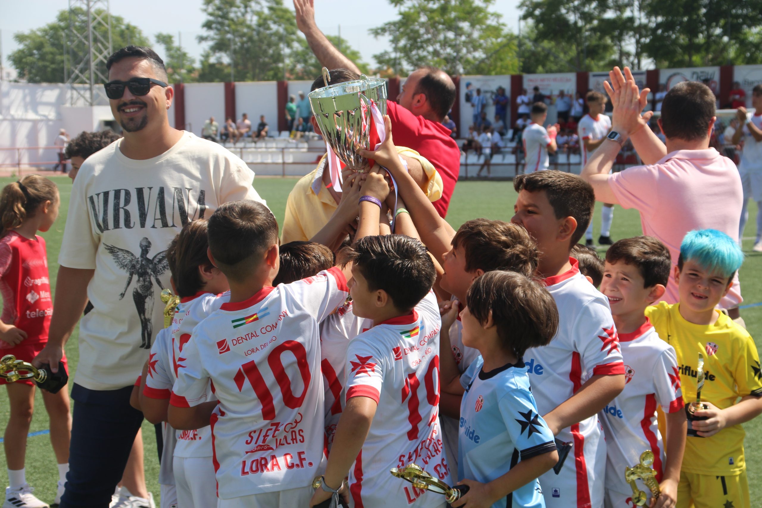 Introducción.- Mañana calurosa, de emociones por la transcendencia del encuentro y emoción también cuando los chavales de prebenjamin “A” Liga Educa”, en unos minutos de emoción, recibieron su trofeo, que les acreditaba como campeones de su grupo. Ambos formaron el ya habitual pasillo para que los pequeños pudieran acceder a recibir su más que merecido trofeo. Un detalle muy bonito para reconocer el buen trabajo realizado por todos ellos, incluidos sus entrenadores, Javi Paredes y Sergio Cuevas…y por su puesto los padres.