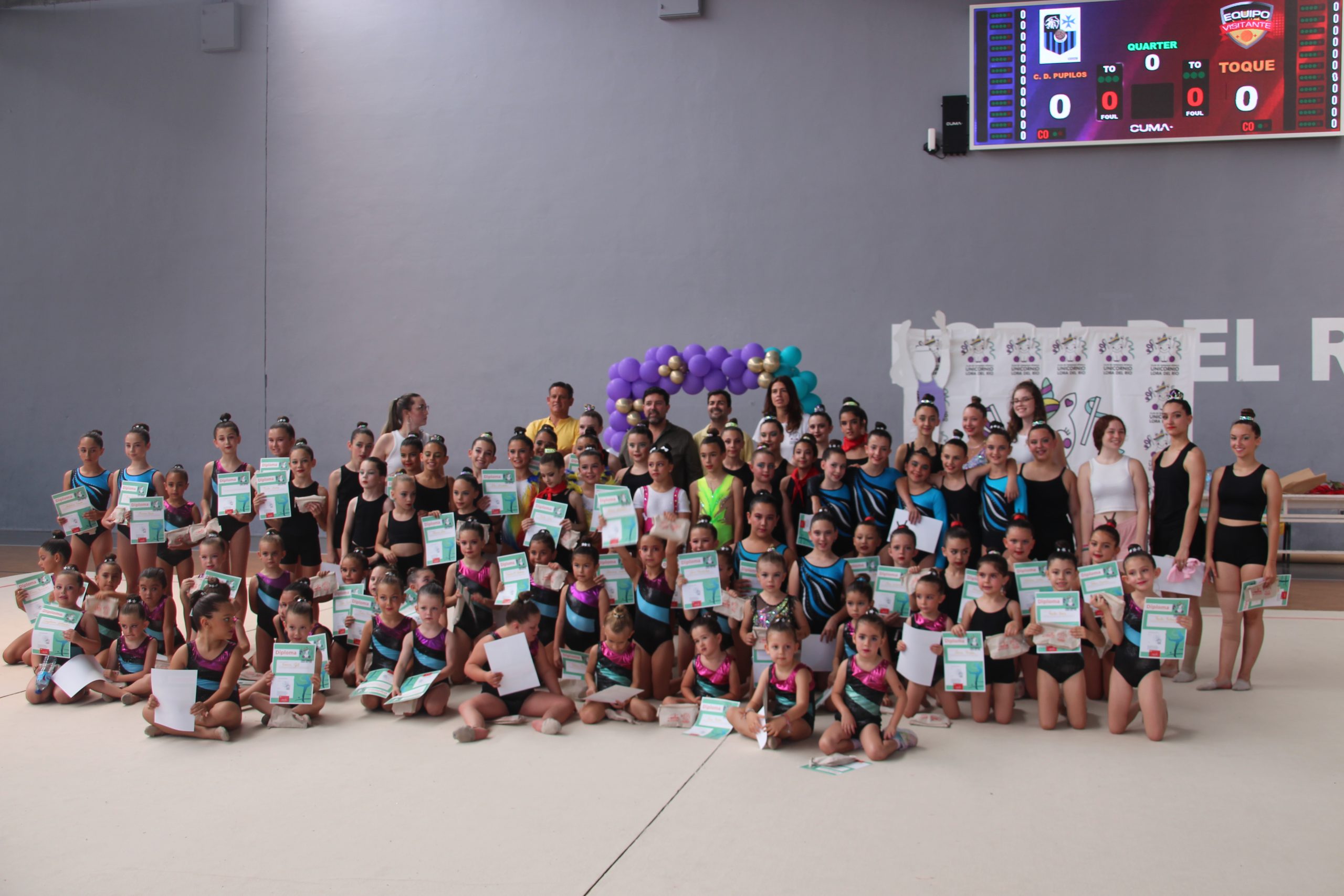 Desarrollo de la exhibición.- Un año mas, se ha celebrado la Exhibición de Clausura de la temporada 2023-2024 del Club de Gimnasia Rítmica Unicornio Lora del Río. Ha tenido lugar el sábado día 22 de junio, en el Polideportivo Municipal. Todas los gimnastas demostraron los avances que han logrado este año de entrenamientos. Los niveles de peque rítmica, iniciación, promoción, diputación y federación desfilaron ante el público que disfrutó de los ejercicios y montajes durante todo el evento. El cierre final lo hizo un grupal de las federadas y diputación y un grupal sorpresa donde participaron todos los niveles.