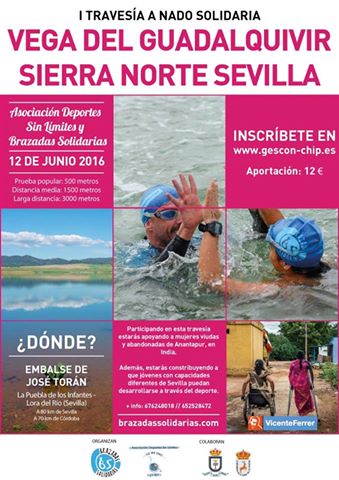 El Embalse de José Torán acogerá mañana domingo 12 de junio la I Travesía a Nado Solidaria ‘Vega del Guadalquivir – Sierra Norte de Sevilla’,actividad que ha sido organizada por ‘Brazadas Solidarias’, la Fundación Vicente Ferrer y la Asociación Deportes Sin Límites (ADSL), con la colaboración del Ayuntamiento de Lora del Río y del Ayuntamiento de La Puebla de los Infante. La organización del evento ha señalado que hay más de 200 nadadores/as inscritos/as.