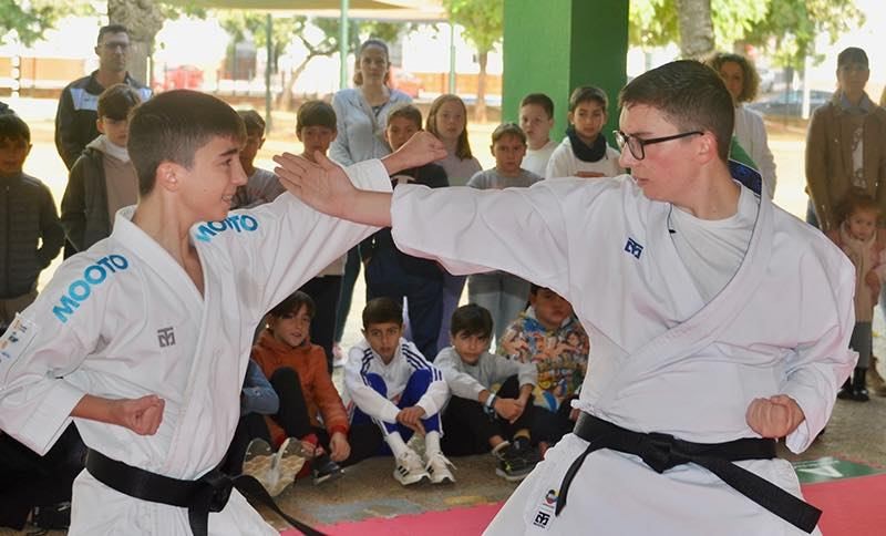 En el CEIP “Reyes de España” se desarrollaron entre ayer y esta misma mañana, dos nuevas exhibiciones, dirigidas por el director César Martínez y la participación del karateca loreño, Marcos Camino.